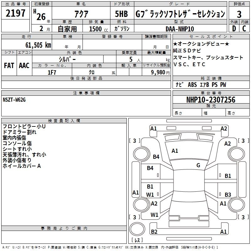 TOYOTA AQUA 2014 г., лот № 2197