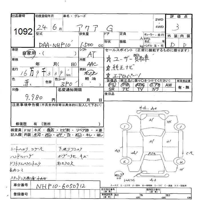 TOYOTA AQUA 2012 г., лот № 1092