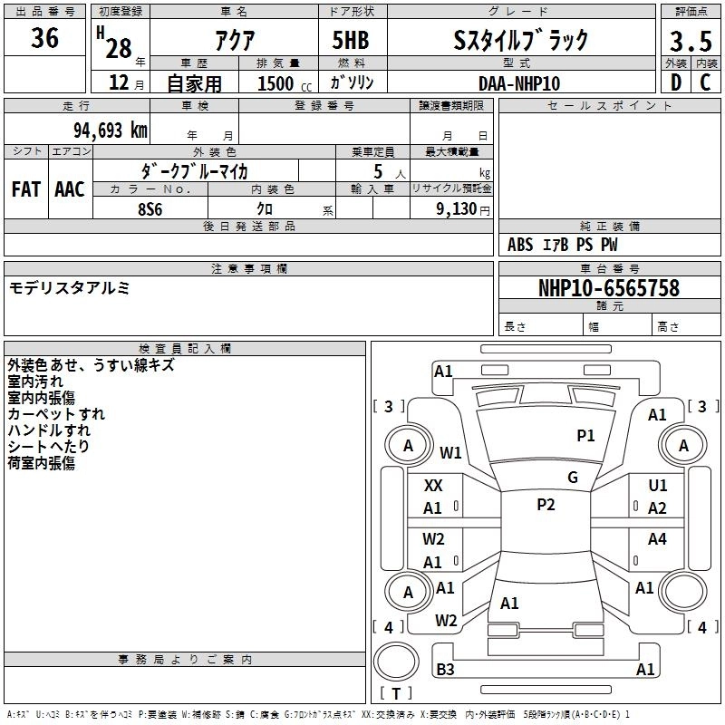 TOYOTA AQUA 2016 г., лот № 36