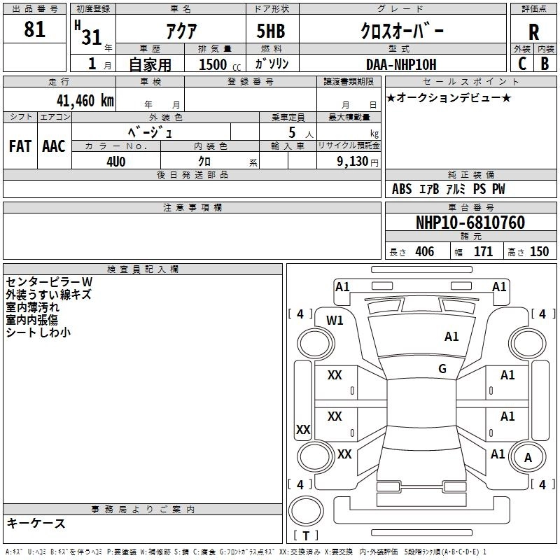 TOYOTA AQUA 2019 г., лот № 81