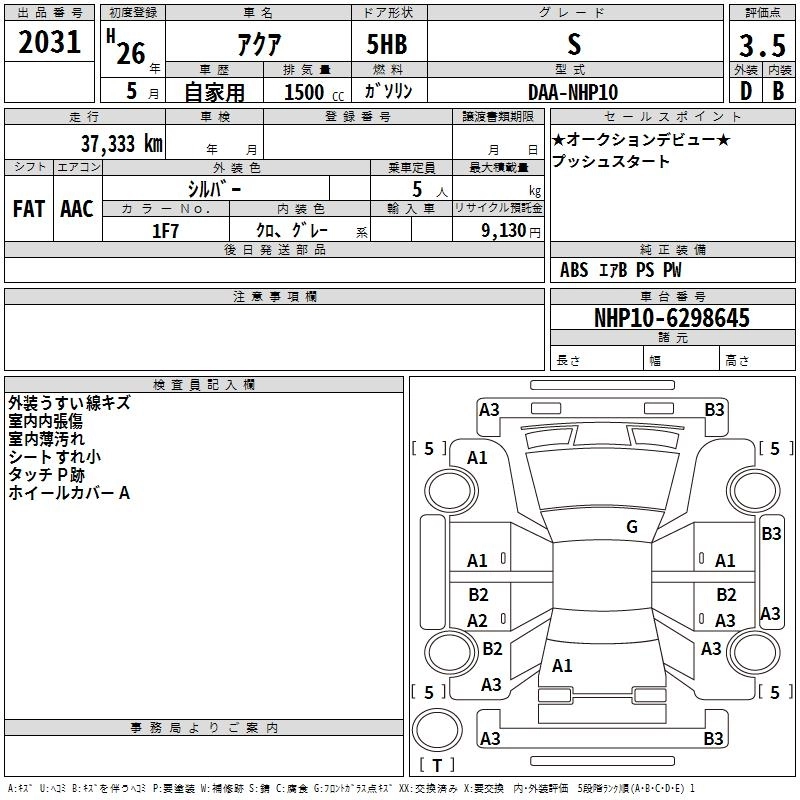 TOYOTA AQUA 2014 г., лот № 2031