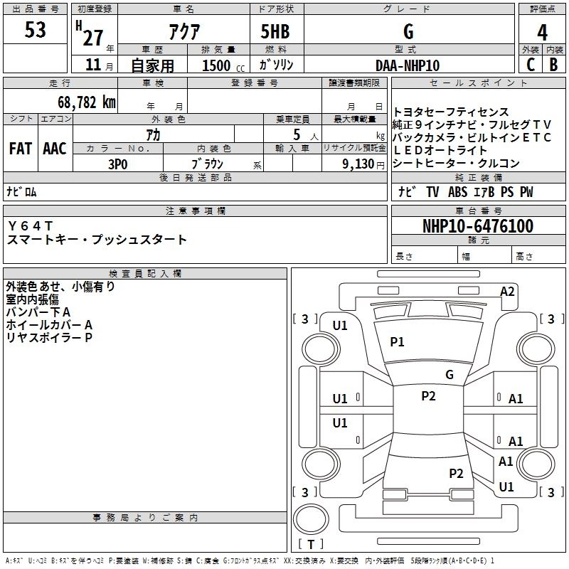 TOYOTA AQUA 2015 г., лот № 53