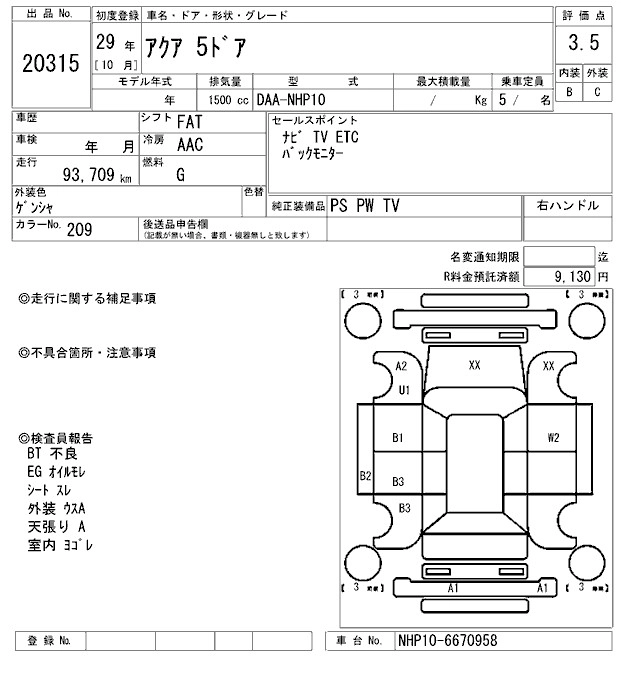 TOYOTA AQUA 2017 г., лот № 20315
