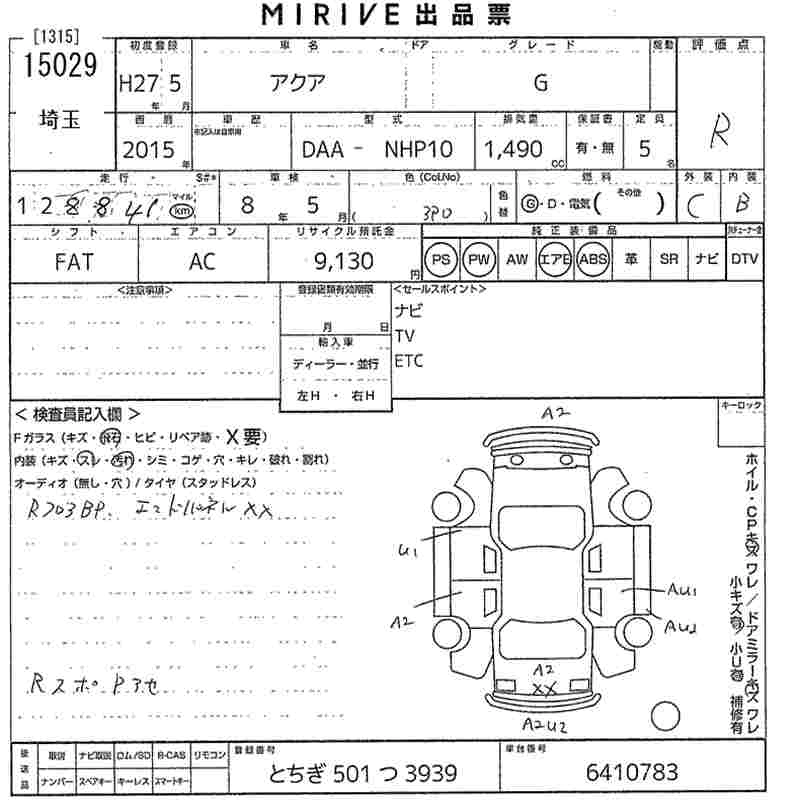 TOYOTA AQUA 2015 г., лот № 15029