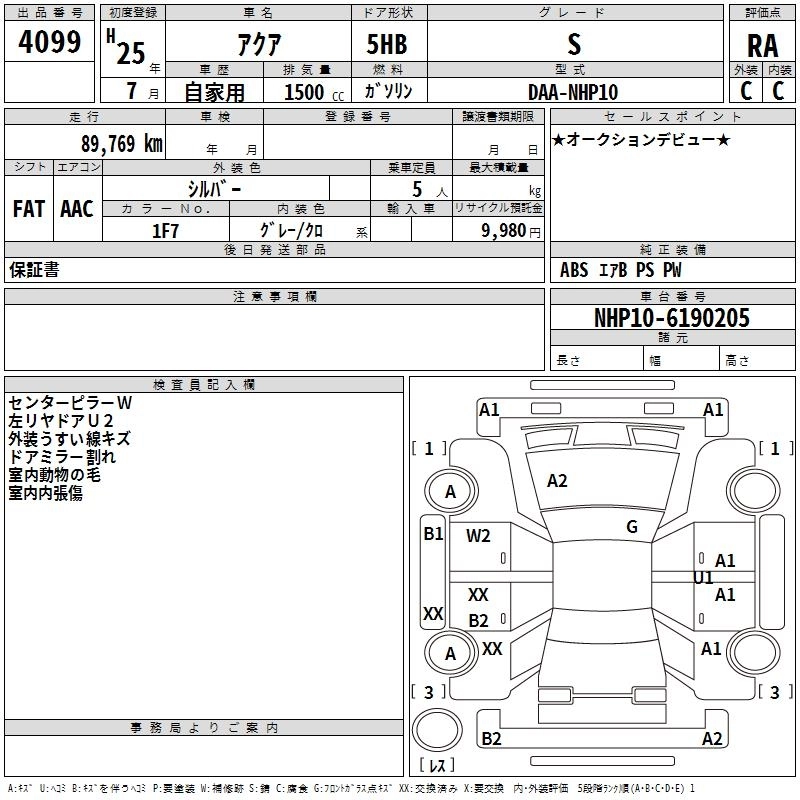 TOYOTA AQUA 2013 г., лот № 4099