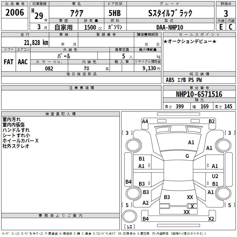 TOYOTA AQUA 2017 г., лот № 2006
