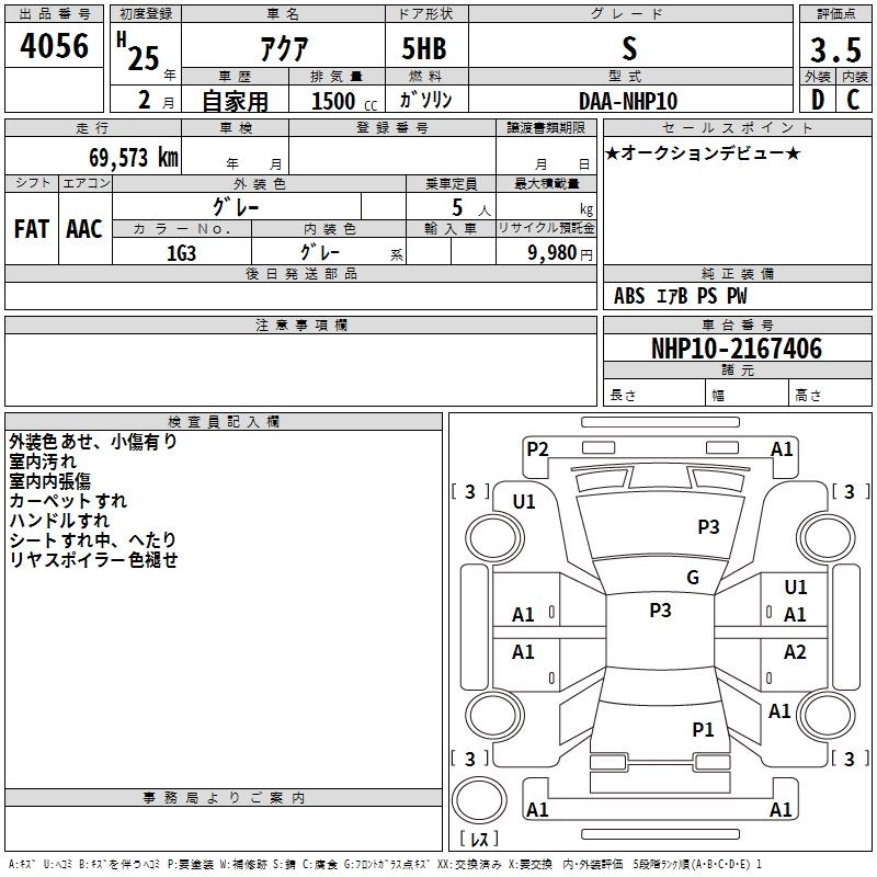 TOYOTA AQUA 2013 г., лот № 4056