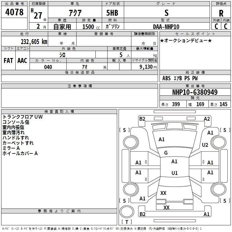 TOYOTA AQUA 2015 г., лот № 4078