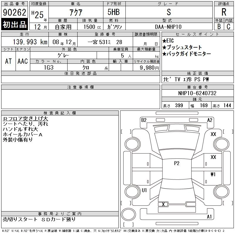 TOYOTA AQUA 2013 г., лот № 90262