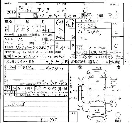 TOYOTA AQUA 2012 г., лот № 2019