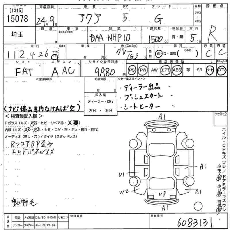 Год выпуска2012 Пробег 112 000 км КузовNHP10 КомплектацияG