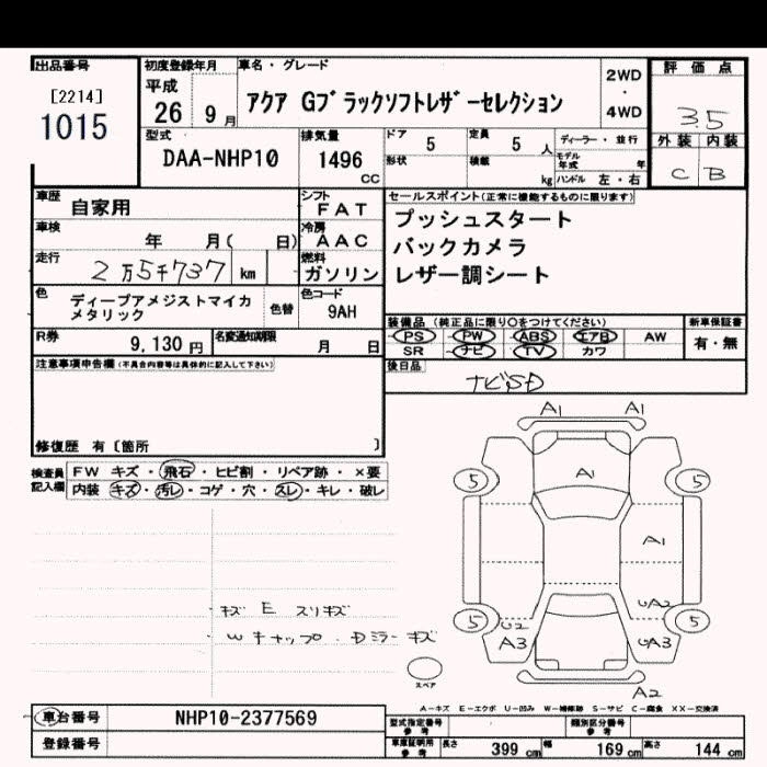 TOYOTA AQUA 2014 г., лот № 1015