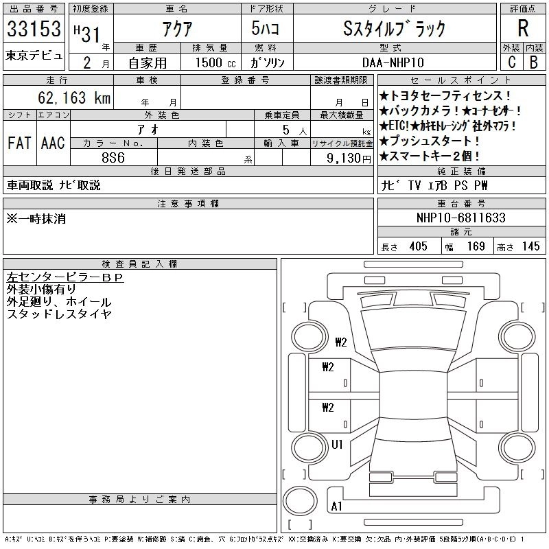 TOYOTA AQUA 2019 г., лот № 33153