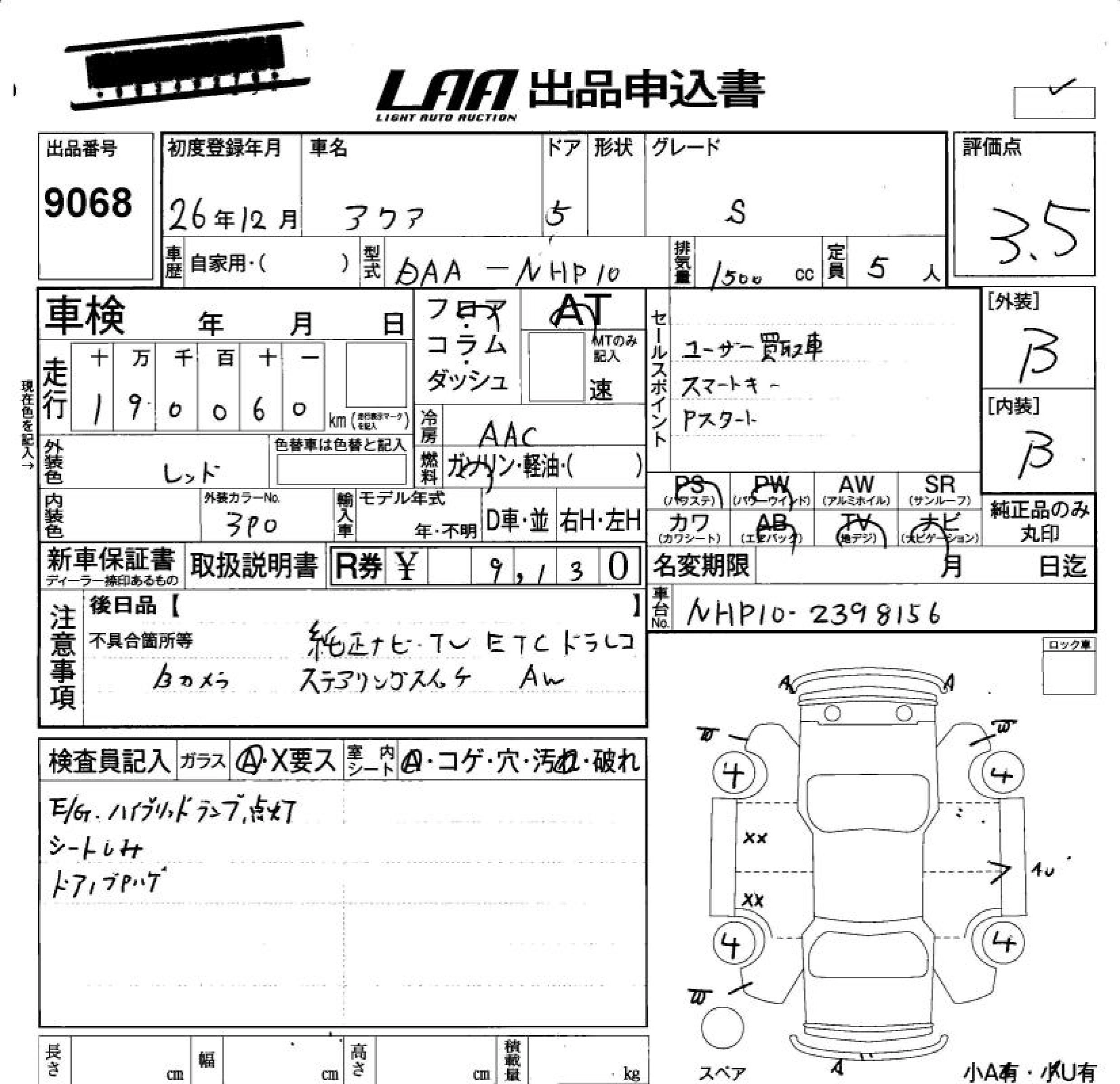 Статус выставлен на аукцион Лот 9068 Аукцион LAA Okayama Дата аукциона 30.01.2026