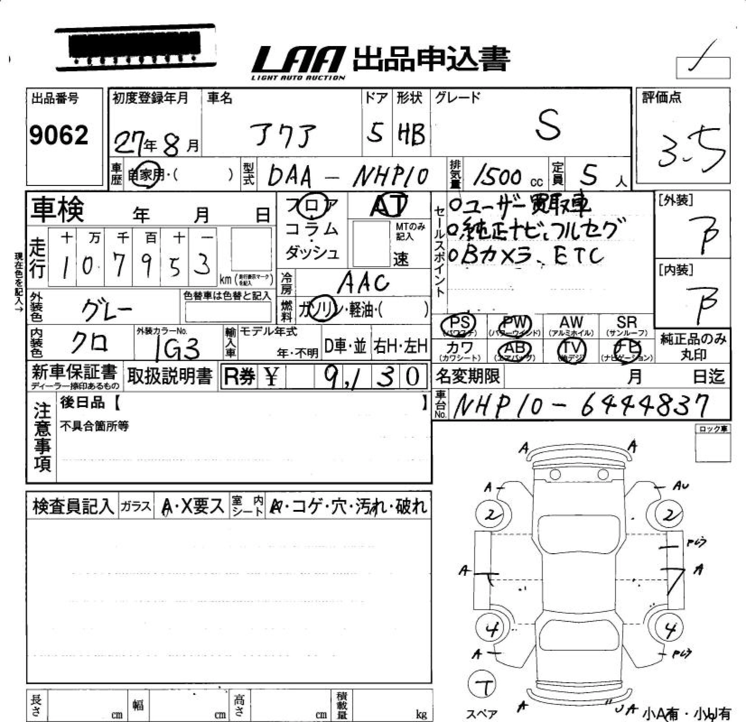 TOYOTA AQUA 2015 г., лот № 9062
