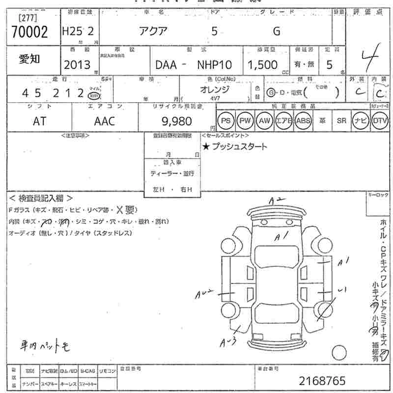 TOYOTA AQUA 2013 г., лот № 70002