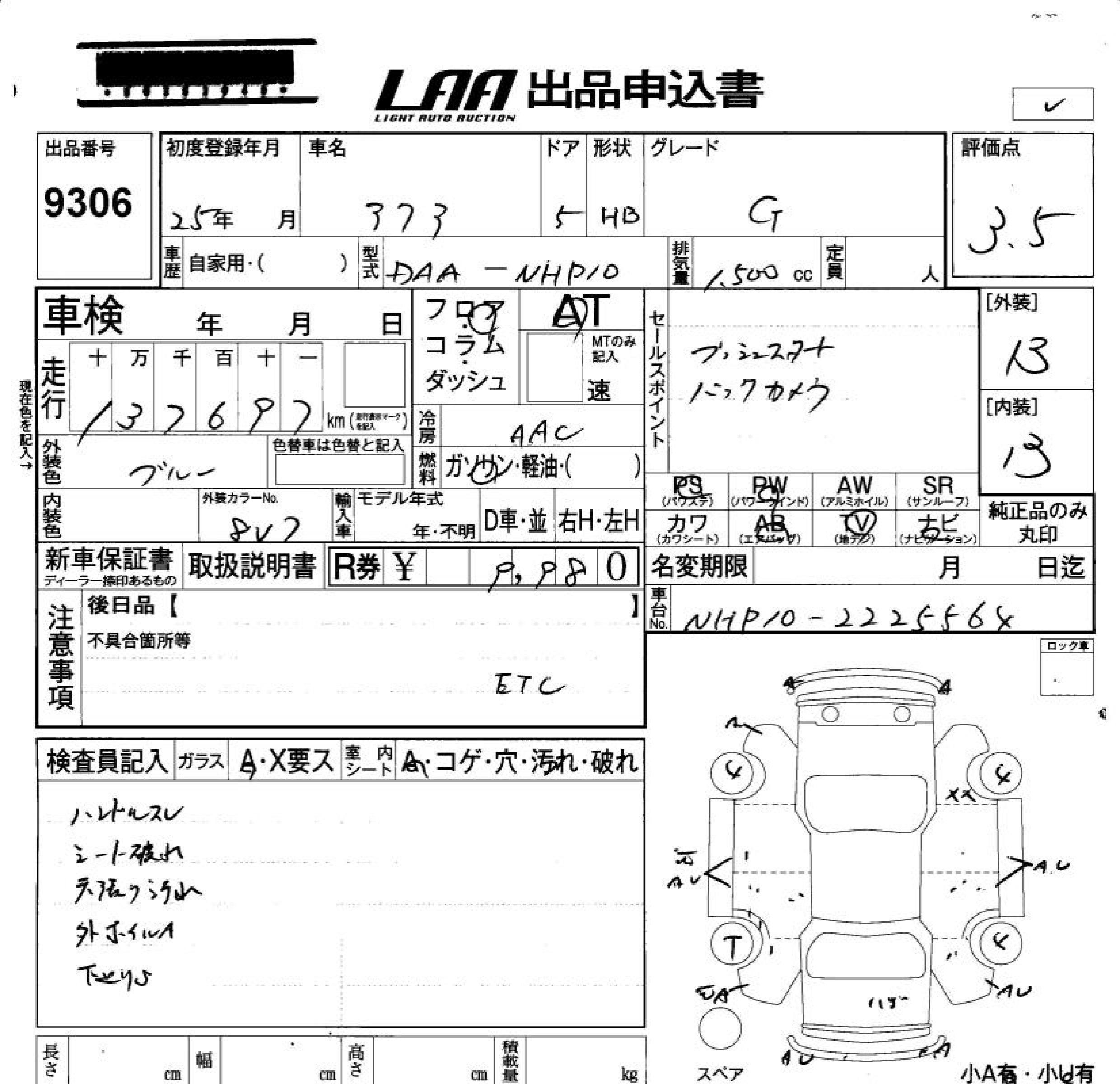 Статус продан Лот 9306 Аукцион LAA Okayama Дата аукциона 06.02.2026