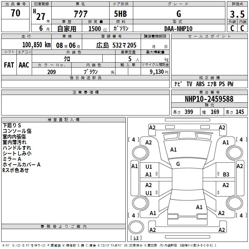 TOYOTA AQUA 2015 г., лот № 70