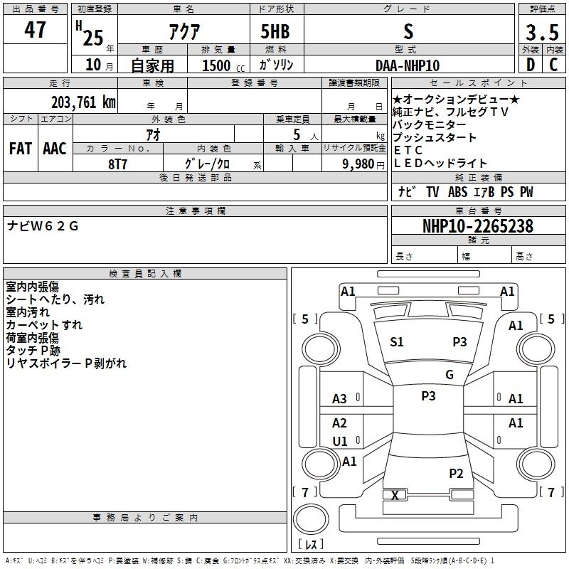 TOYOTA AQUA 2013 г., лот № 47