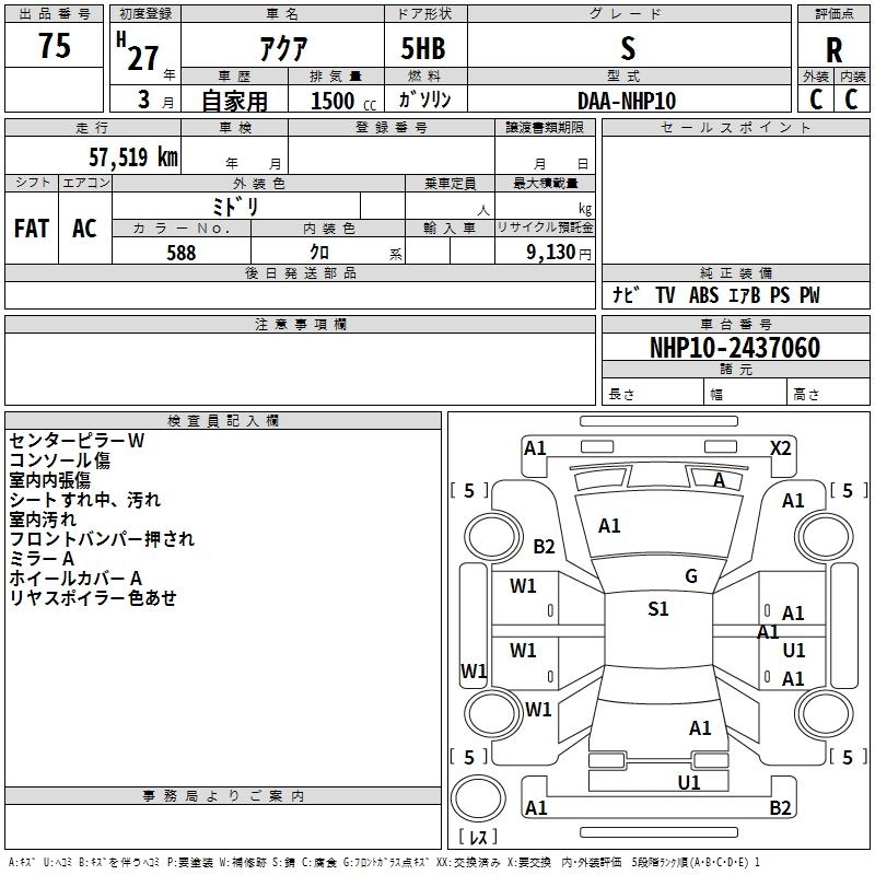 TOYOTA AQUA 2015 г., лот № 75