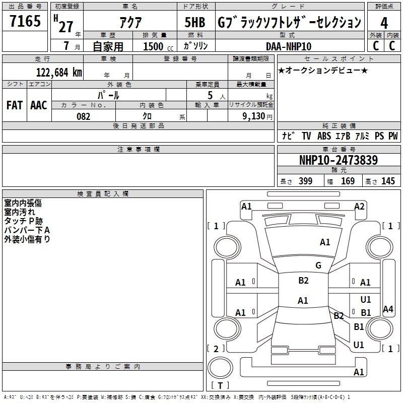TOYOTA AQUA 2015 г., лот № 7165