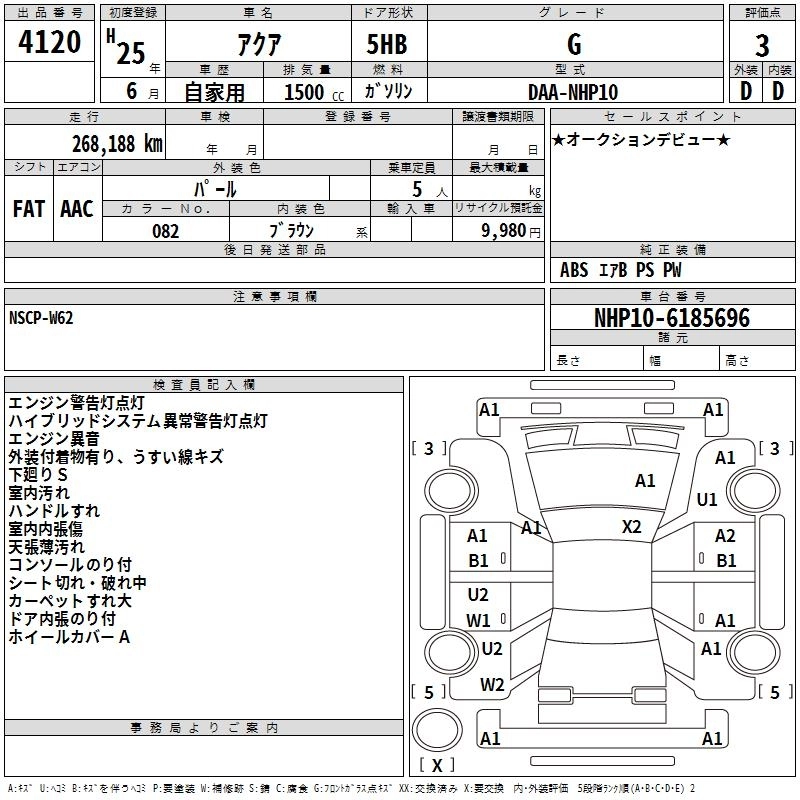 TOYOTA AQUA 2013 г., лот № 4120