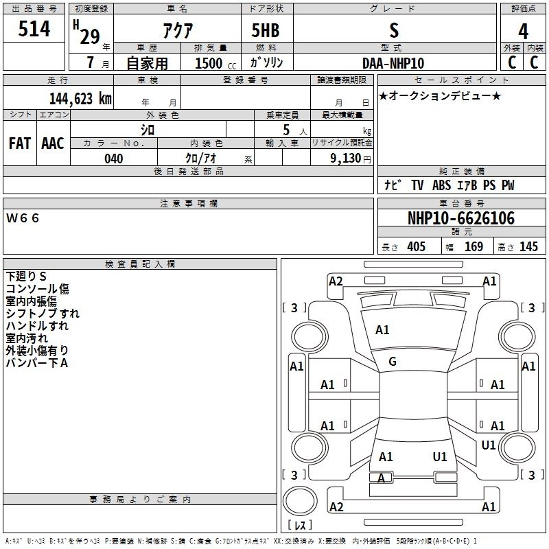 TOYOTA AQUA 2017 г., лот № 514