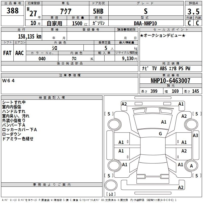TOYOTA AQUA 2015 г., лот № 388