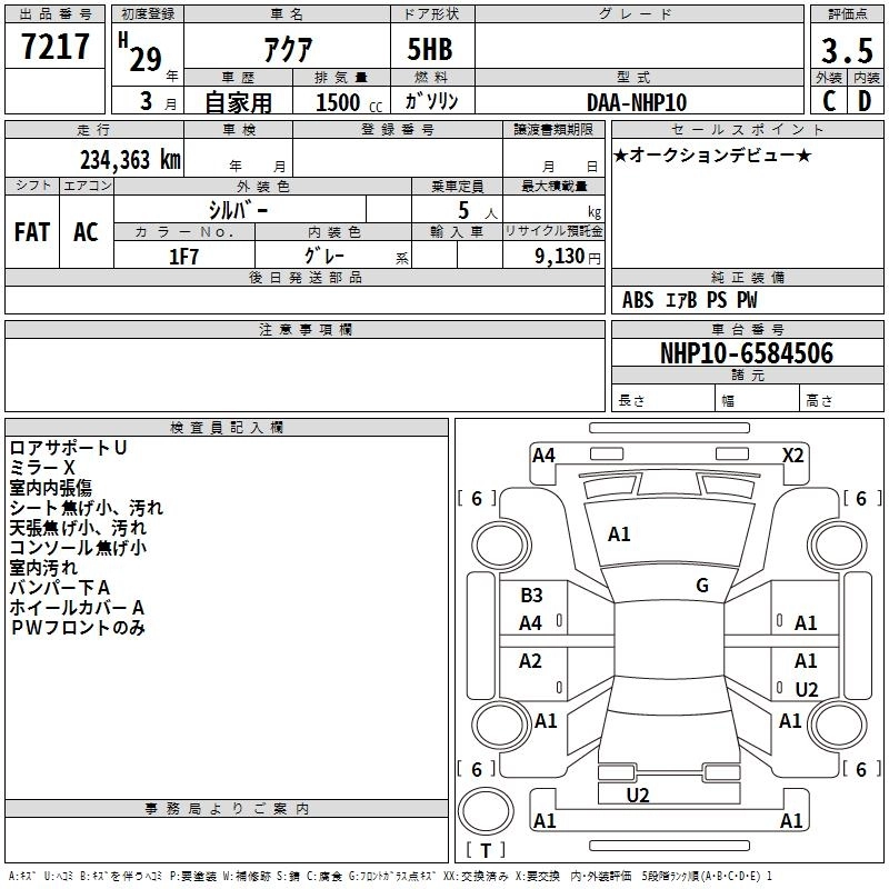 TOYOTA AQUA 2017 г., лот № 7217
