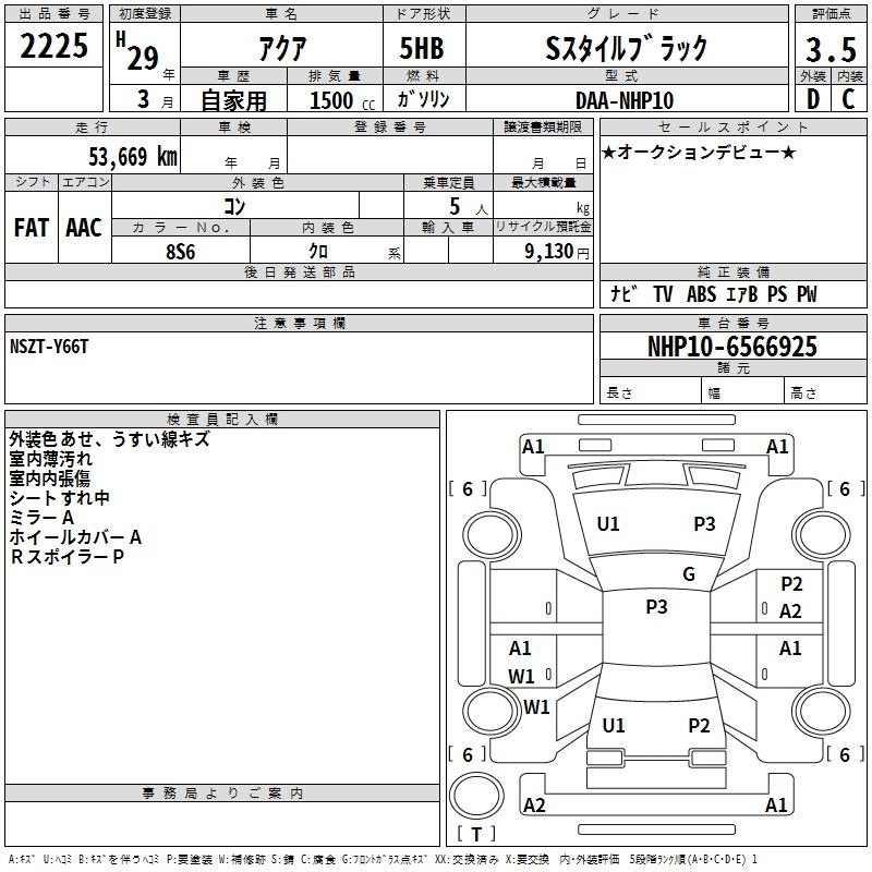 TOYOTA AQUA 2017 г., лот № 2225