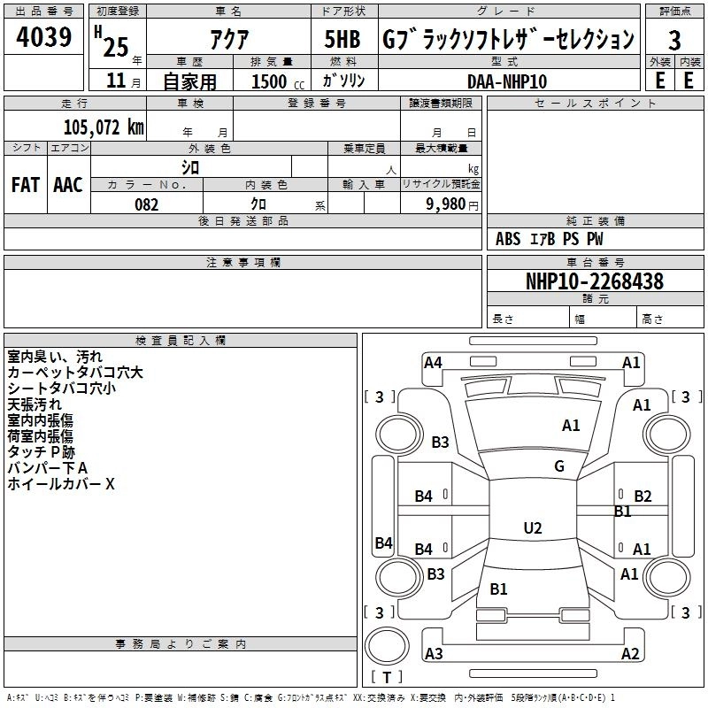 TOYOTA AQUA 2013 г., лот № 4039
