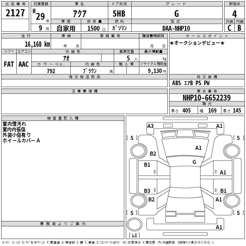 TOYOTA AQUA 2017 г., лот № 2127