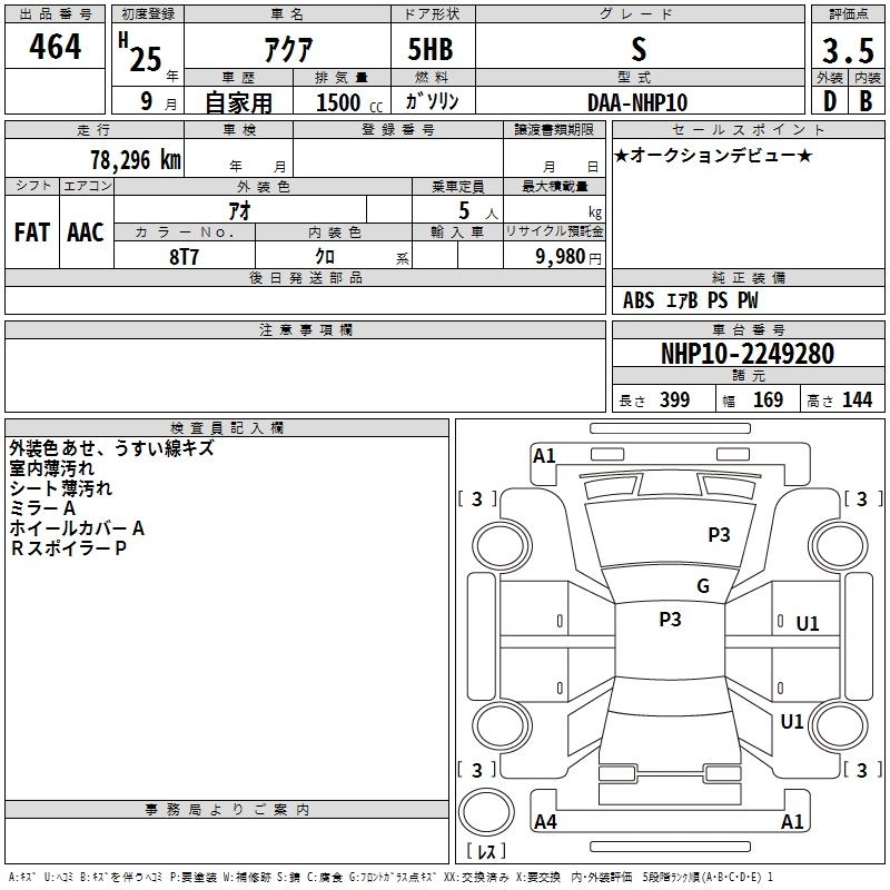 TOYOTA AQUA 2013 г., лот № 464