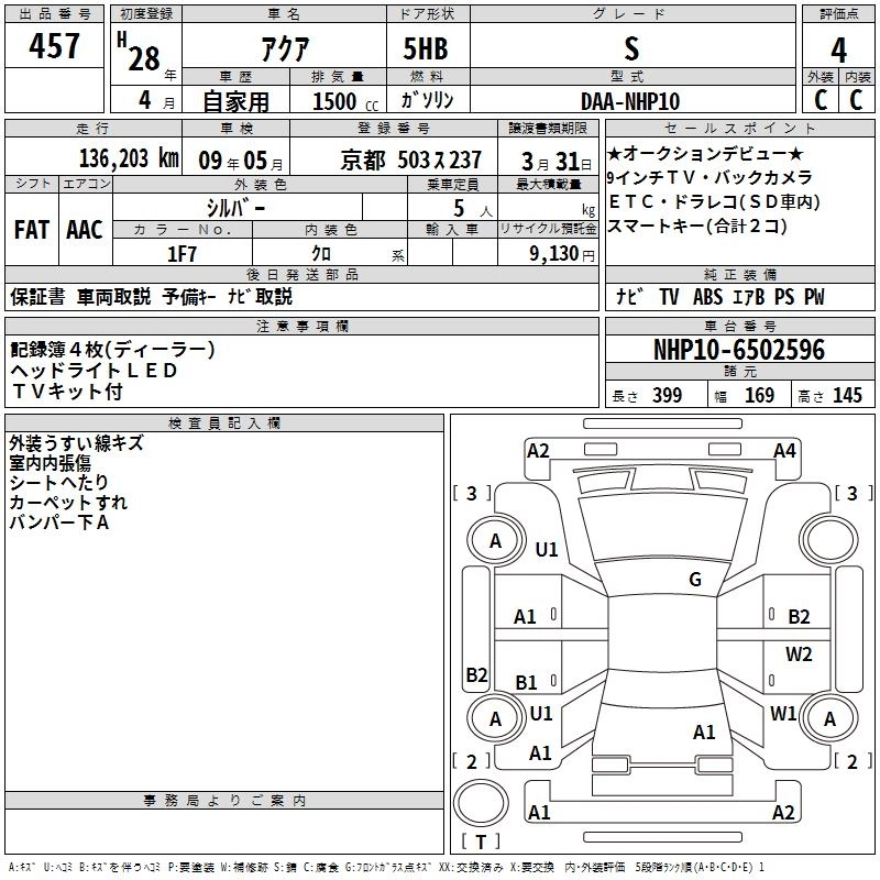 TOYOTA AQUA 2016 г., лот № 457