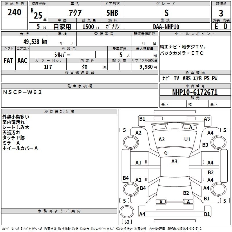 TOYOTA AQUA 2013 г., лот № 240