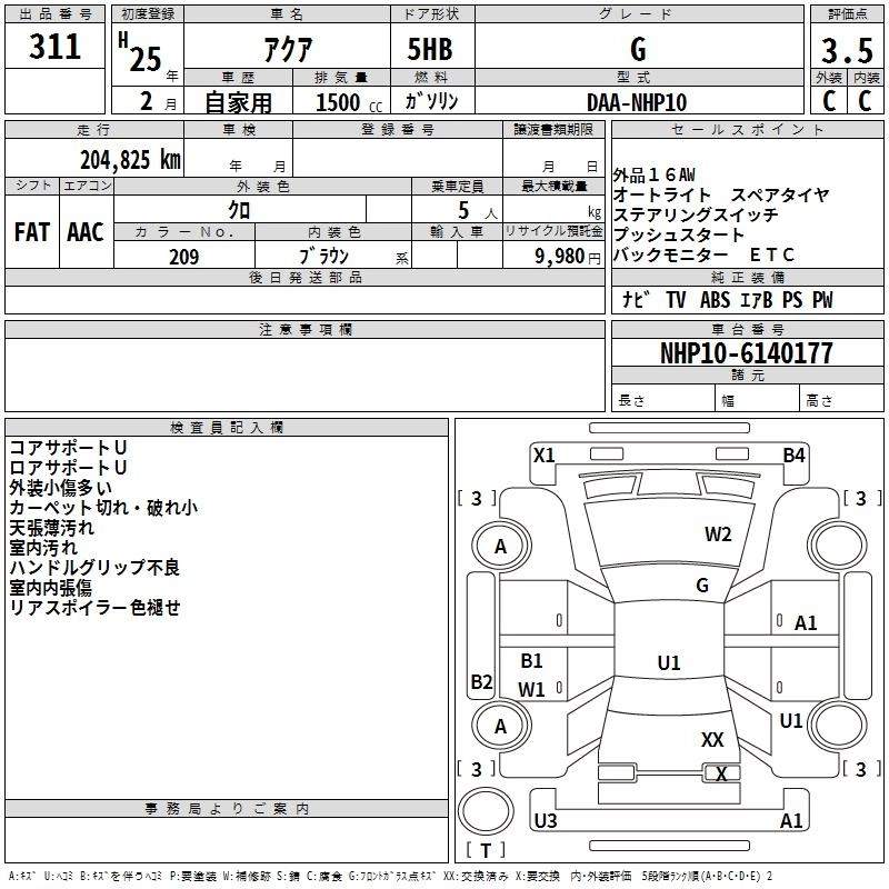 TOYOTA AQUA 2013 г., лот № 311
