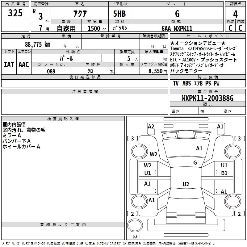 TOYOTA AQUA 2021 г., лот № 325