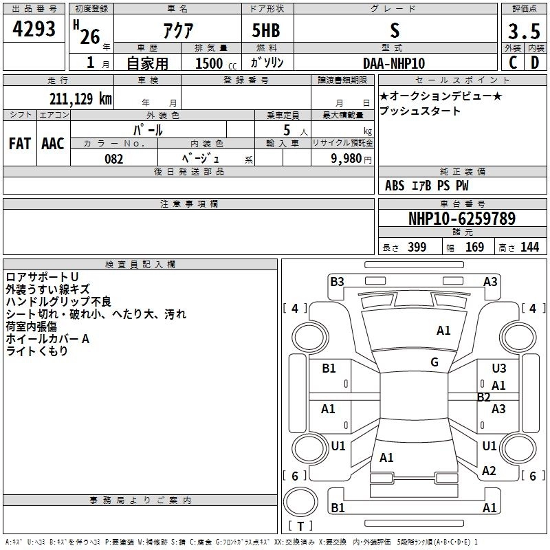TOYOTA AQUA 2014 г., лот № 4293