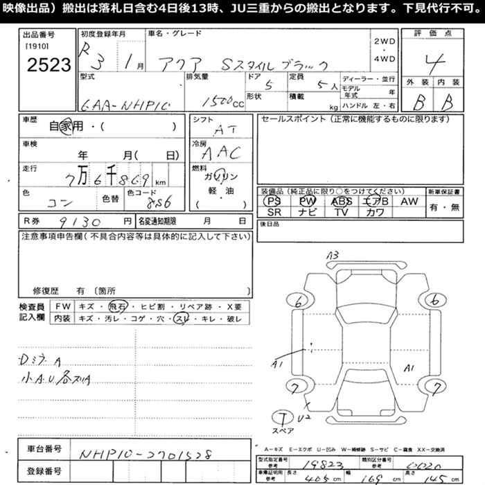 TOYOTA AQUA 2021 г., лот № 2523