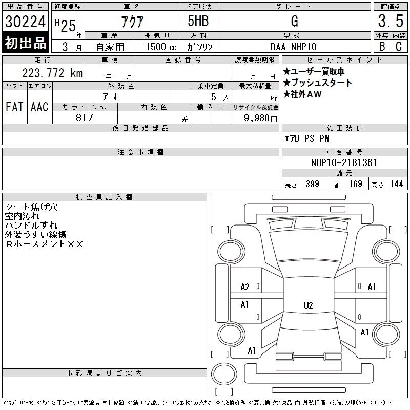 TOYOTA AQUA 2013 г., лот № 30224
