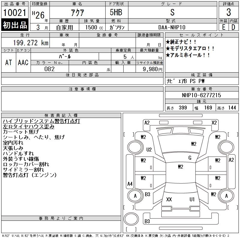 TOYOTA AQUA 2014 г., лот № 10021