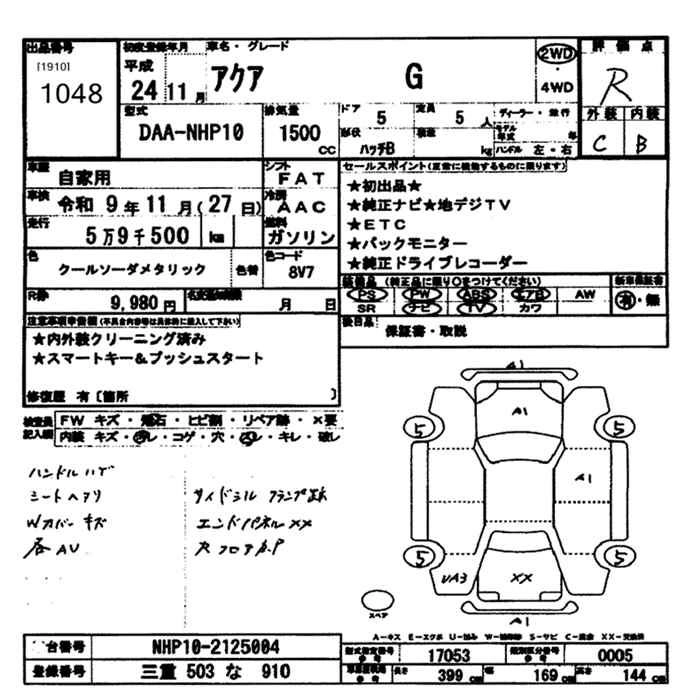 TOYOTA AQUA 2012 г., лот № 1048