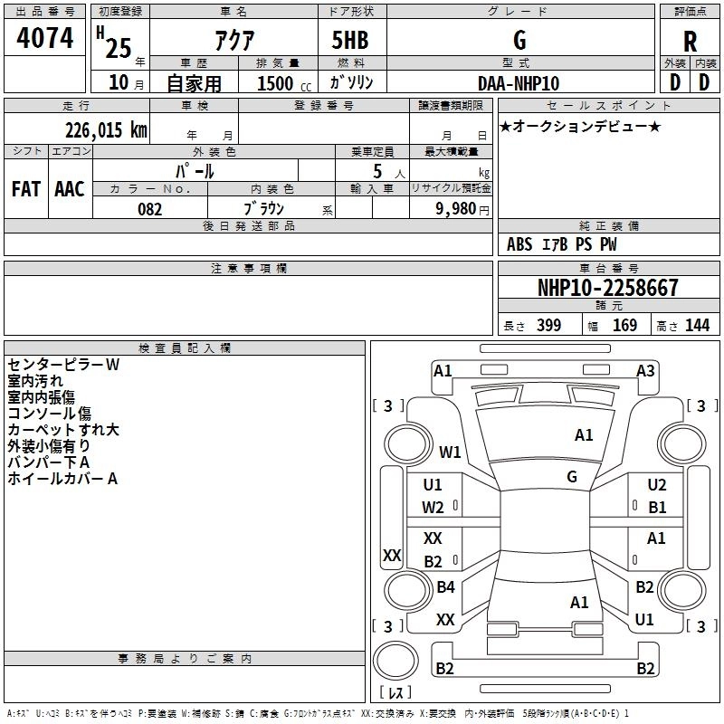 TOYOTA AQUA 2013 г., лот № 4074