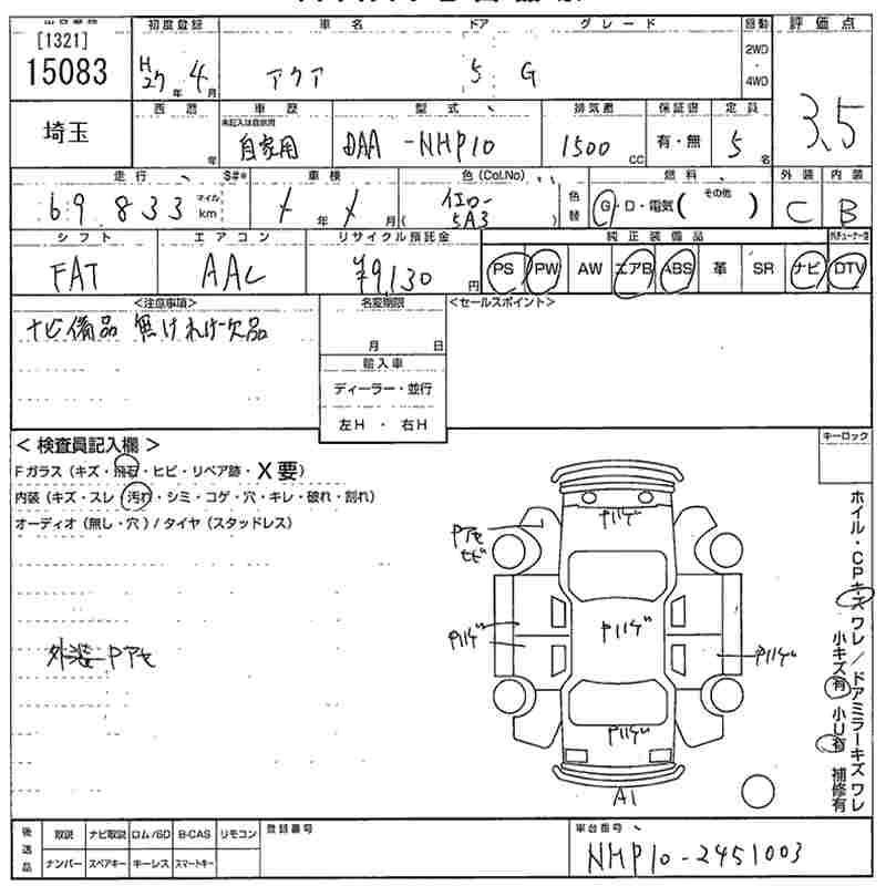 TOYOTA AQUA 2015 г., лот № 15083