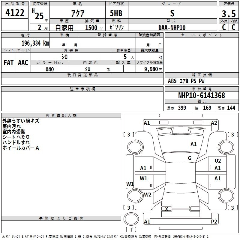 TOYOTA AQUA 2013 г., лот № 4122