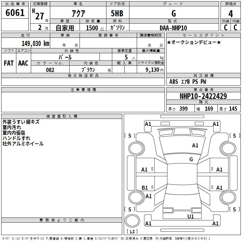 TOYOTA AQUA 2015 г., лот № 6061