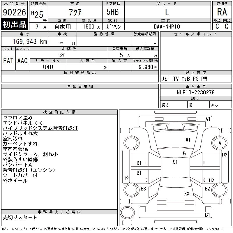 TOYOTA AQUA 2013 г., лот № 90226