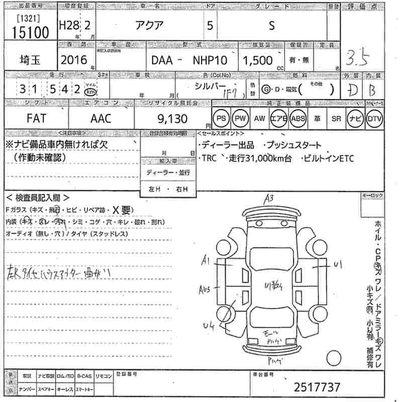 TOYOTA AQUA 2016 г., лот № 15100