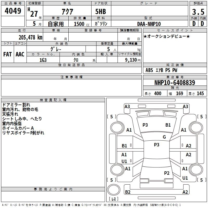 TOYOTA AQUA 2015 г., лот № 4049