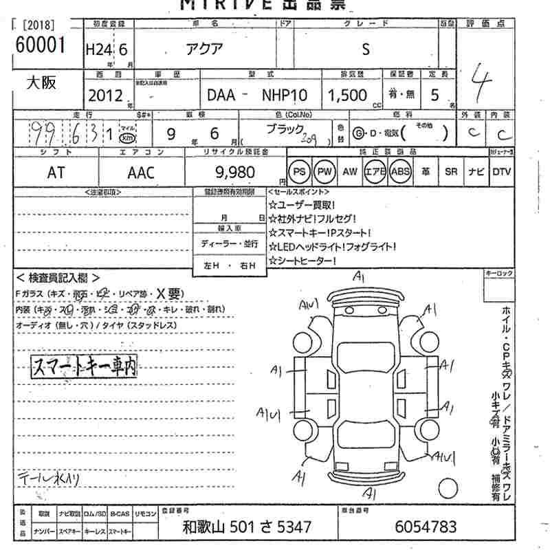 TOYOTA AQUA 2012 г., лот № 60001